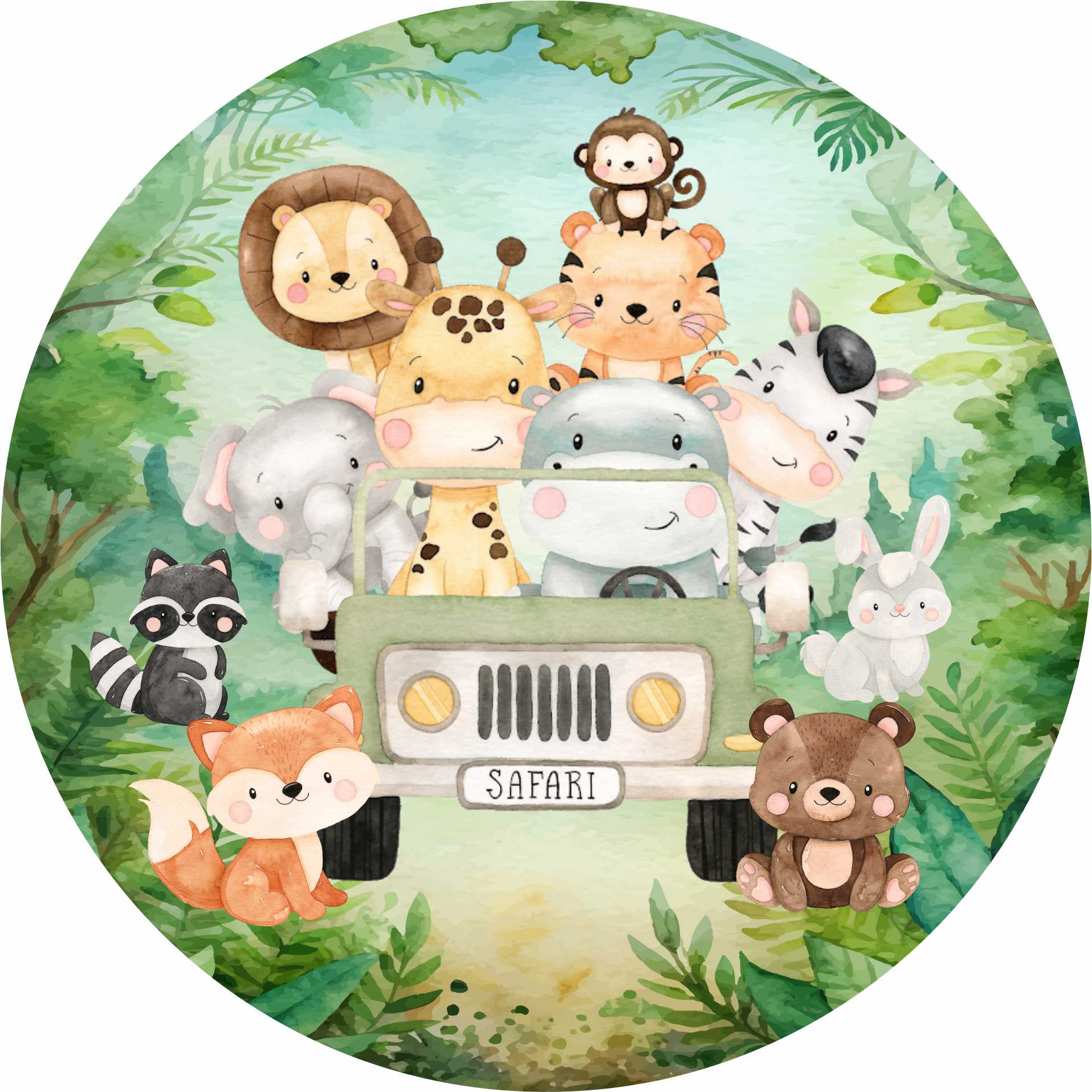 ✅Painel Safari Aquarela Montagem Instantanea dobrável tecido Abre Fácil Pegue Monte 1 metro