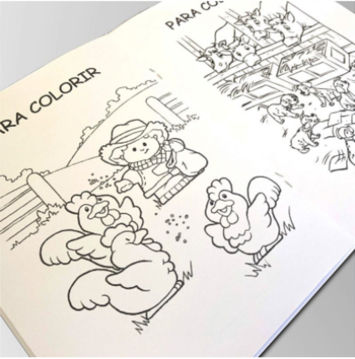 ✅ Miolo da revistinha com 12 páginas, ou seja, 12 desenhos para colorir relacionados ao tema, impressos em folha sulfite branca.